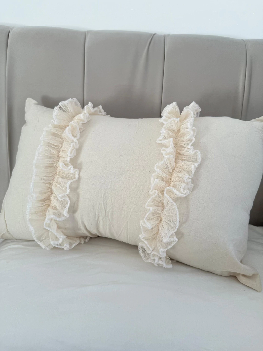 Realizado en tussor con volado y puntilla