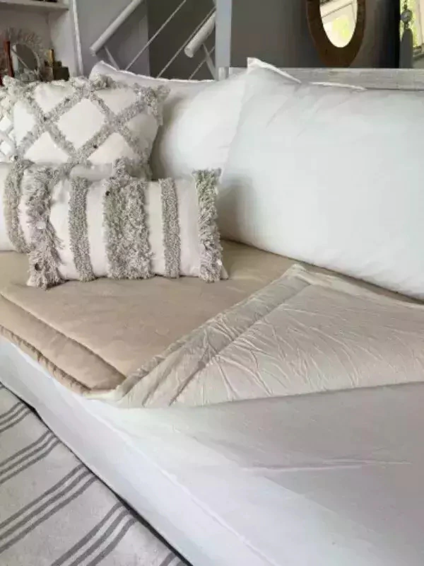 Pillow reversible realizado en tussor, de un lado arena y del otro natural.