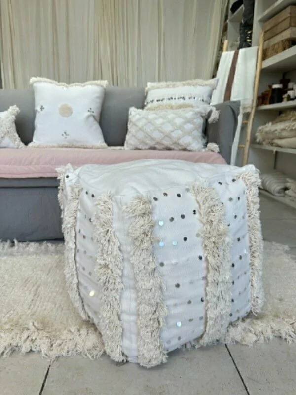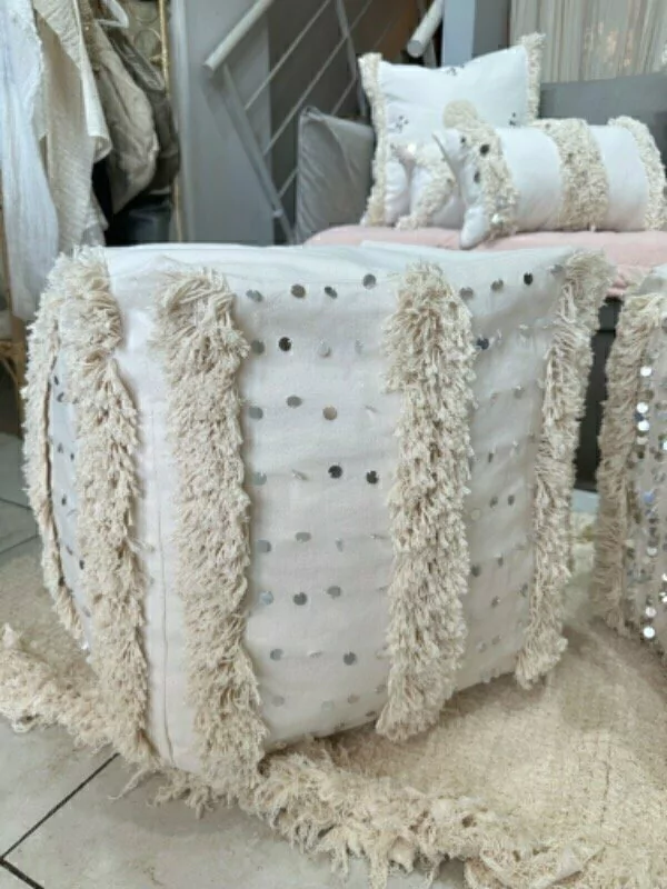Puff bordado a mano con lentejuelas (funda desmontable)