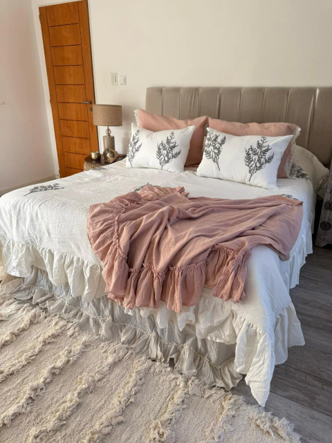 Un dormitorio cálido y elegante, donde los detalles artesanales se lucen con luz propia. Cada pieza fue elegida para crear una atmósfera armónica, sofisticada y natural.