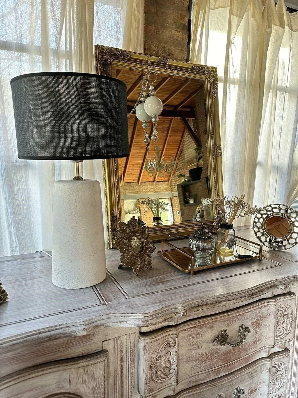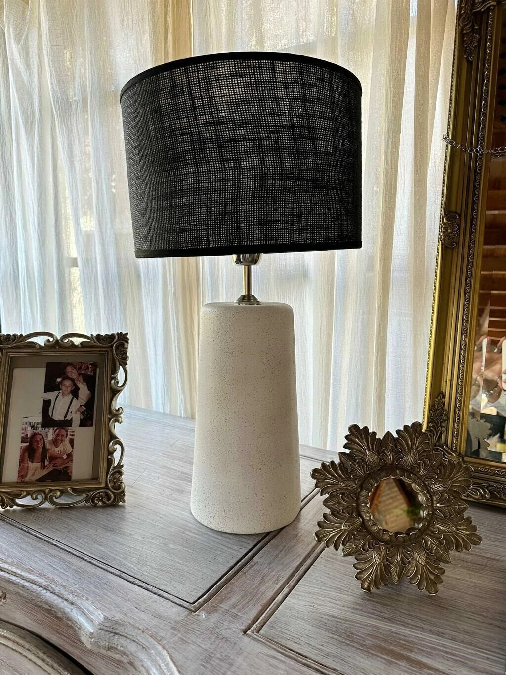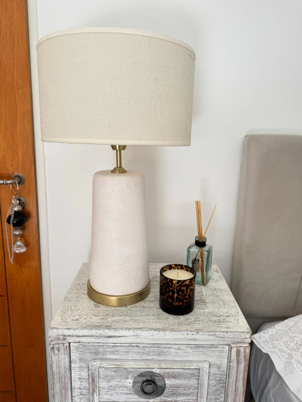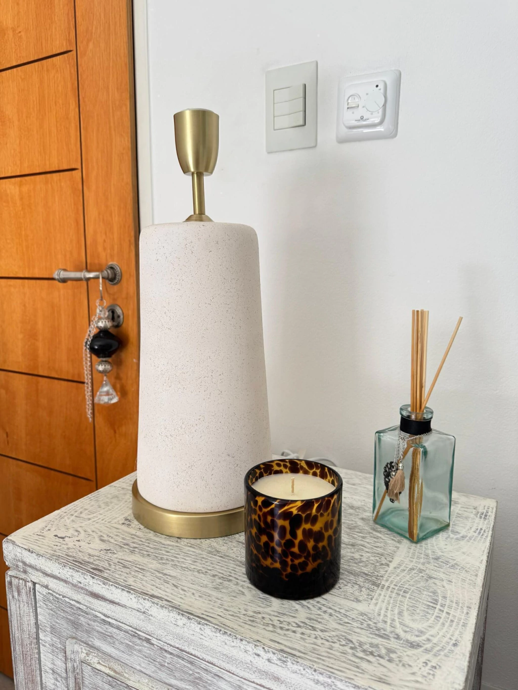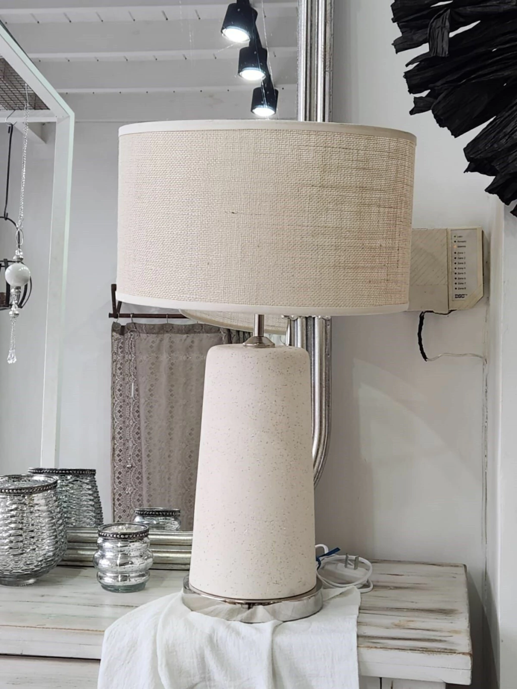 Velador realizado en cerámica de piedra.