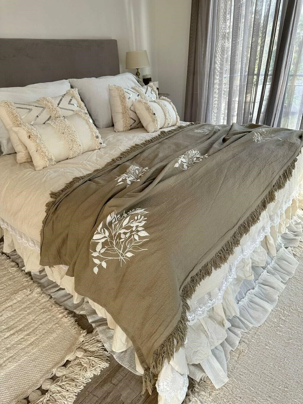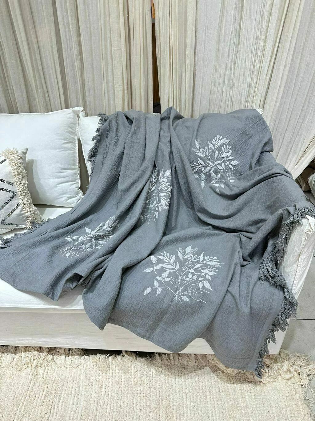 Manta en tusor decatizado estamapada en relieve